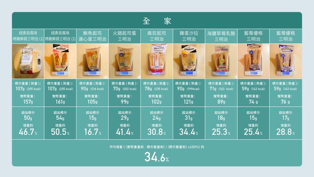 推 UD305: 不只三明治,幾乎所有麵包甜點類都比標示重,熱量根本標 05/31 18:57