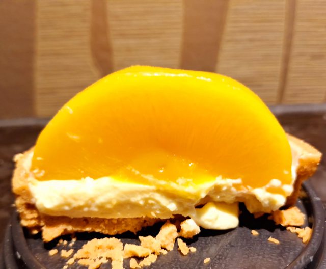 塔皮很脆 水蜜桃如果吃過罐頭的應該知道那個味道