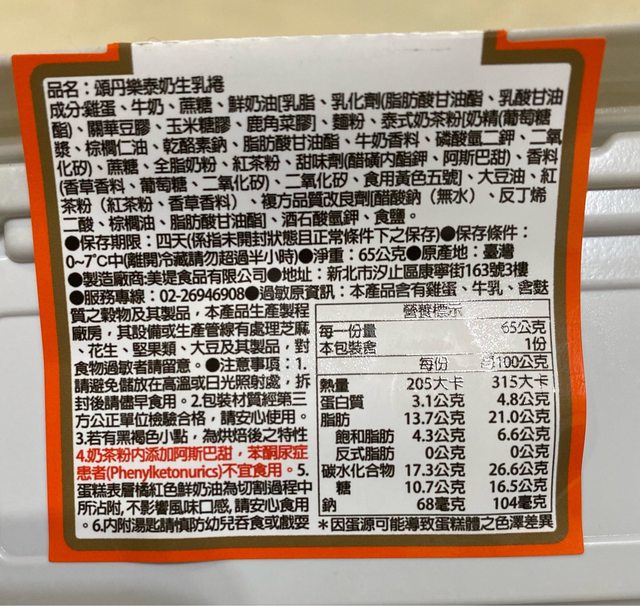 【商品名稱/價格】:頌丹樂 泰奶生乳捲/$69