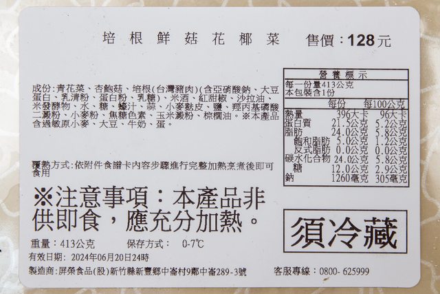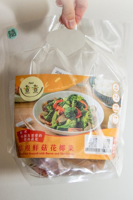 【商品名稱/價格】:Fami煮煮 培根鮮菇花椰菜/128元