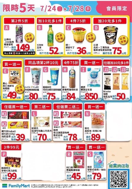 標題: [情報] 全家 7/24~7/28 限時優惠