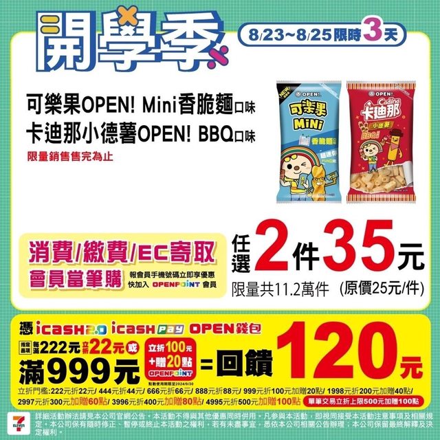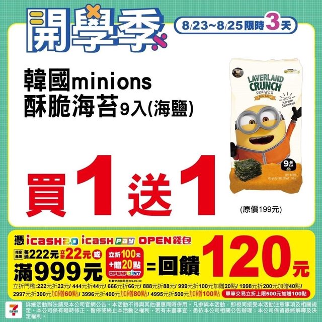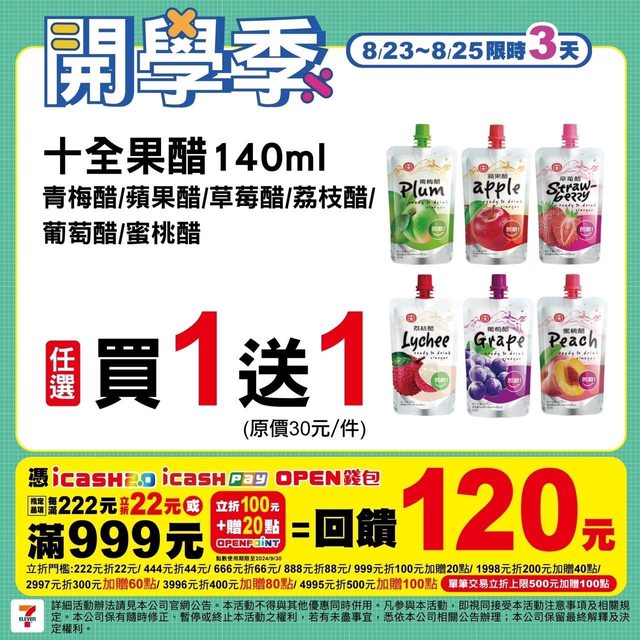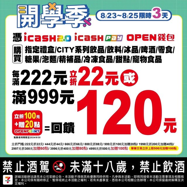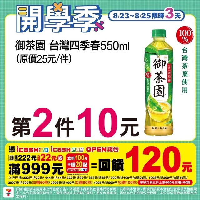標題: [情報] 7-11 開學季 8/23~8/25