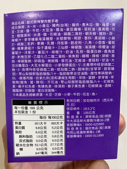 【商品名稱/價格】:全家越式酸辣雙肉雙手卷/$55