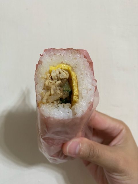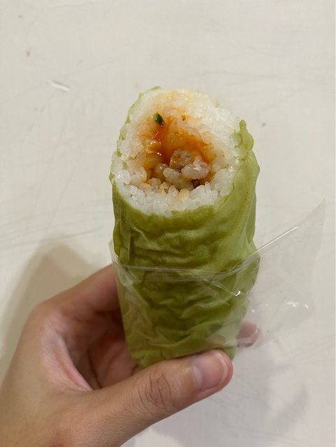 全家最近出了好多越式料理,手卷的顏色有點可愛,看了一下介紹綠色皮是烤越式豬肉搭