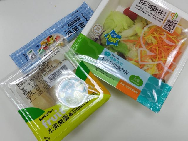 挑了全家的十品目田園沙拉跟盒裝文旦(有集章活動可累積一點)