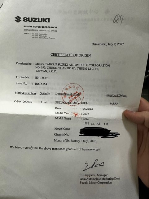 標題[售車] 2007 SUZUKI SX4 白色