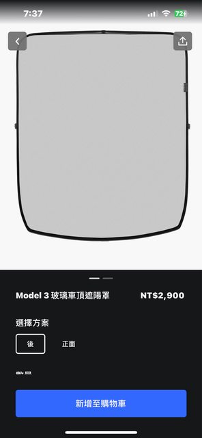 標題[週邊] Tesla Model3 原廠後車頂遮陽簾