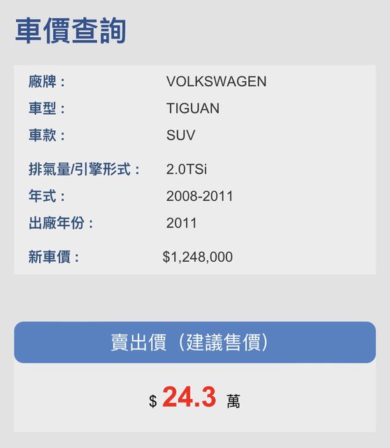 車款型式/排氣量:Tiguan tsi / 1984cc