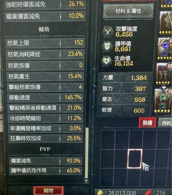 我也可以穿其他裝備+技能樹,把怒氣撐到17X,但是那種狀態下滿怒情況不是很理想