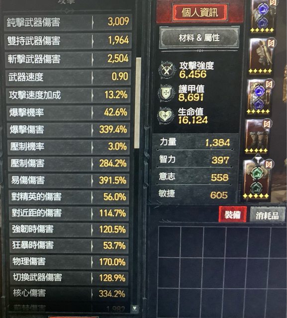 盤型依序用的是:武器大師、戰爭使者、屠殺、屠殺者
