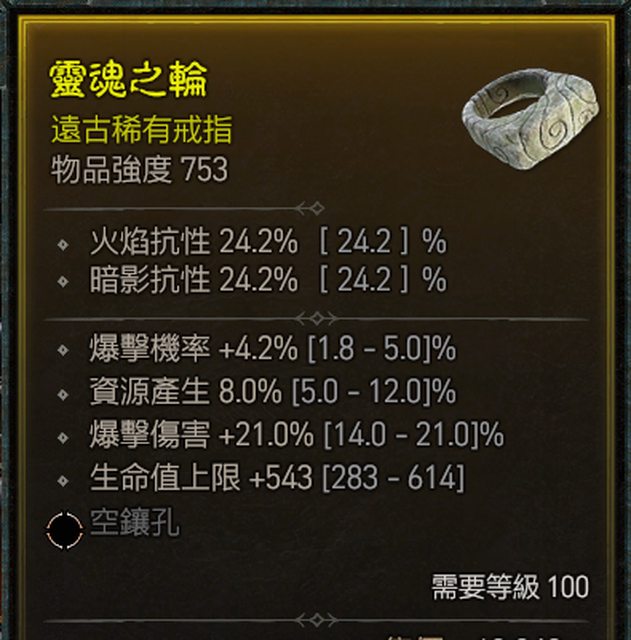 標題[競標] D4 百等戒指 爆率/資源/爆傷/生命值