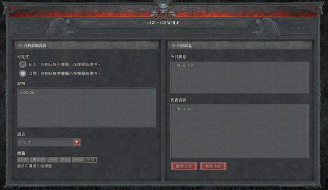 按ESC後 在氏族頁面搜尋 G8 或 G8 Wolf 應該就能找到