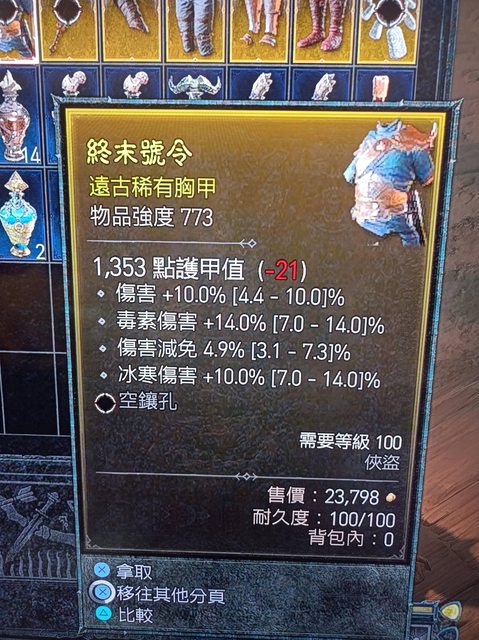 標題[競標] D4 短標 滿傷/毒傷 減免 冰傷 胸甲