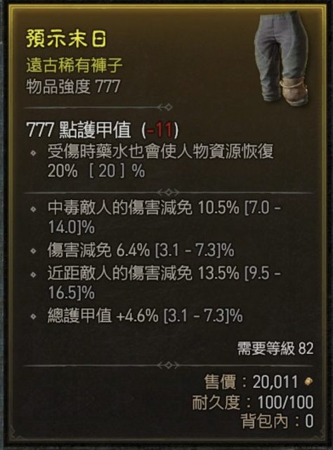 物 品:777三減傷82級褲子