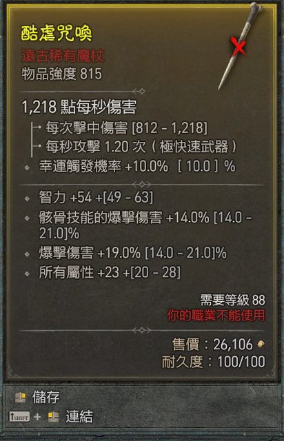 標題Re: [競標] D4 LV88 裝等815 智+全屬+爆傷 單手魔杖