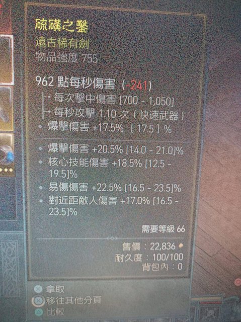 標題[競標] D4 短標 近頂 爆傷易傷近距核心單手劍