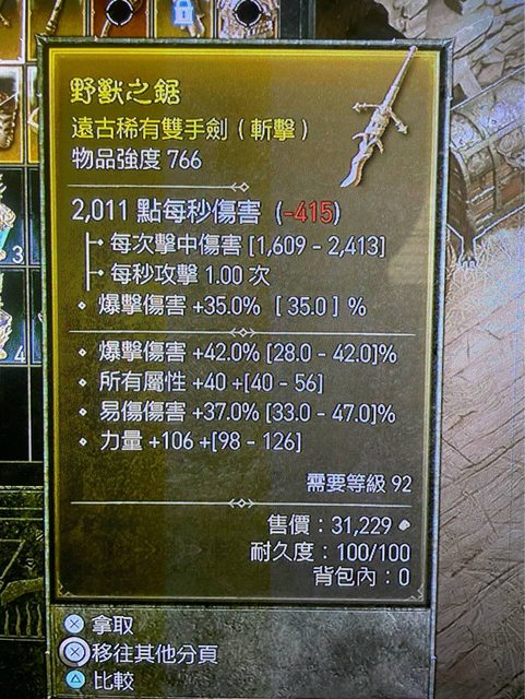 標題[競標] D4 野蠻雙手劍 爆/易/全屬/力