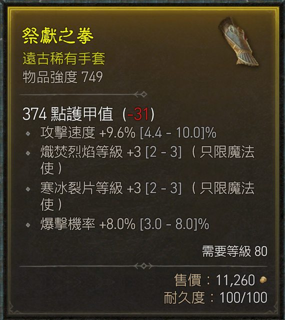 標題[競標] D4 頂爆率/近頂攻速/裂片+3 法師手套(80
