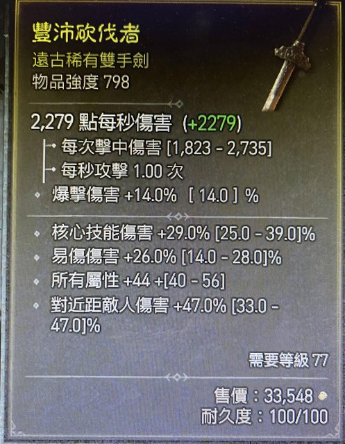 798雙手劍 2000萬 等級77