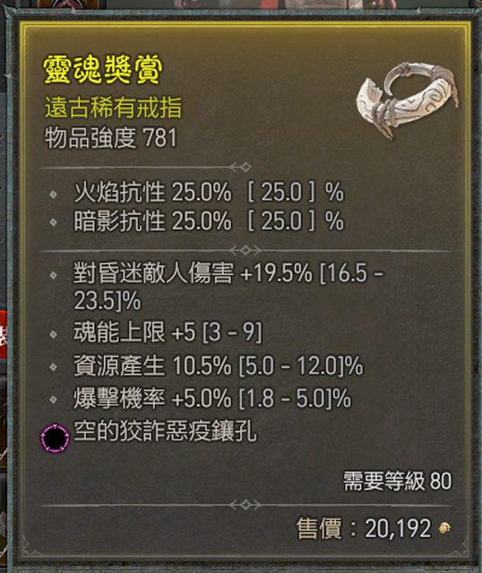 標題[競標] D4 S1 戒指 頂暴率/魂能/資源