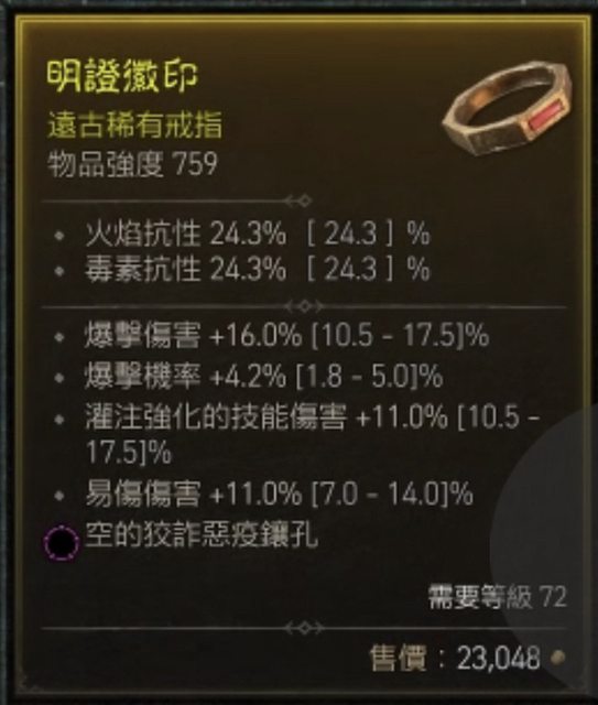 標題[競標] D4 戒指 高Roll 易傷/爆率/爆傷