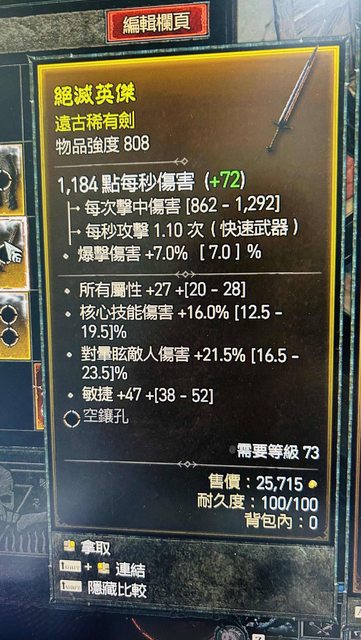 標題[競標] D4 S1 單手劍 全屬/核心/敏捷