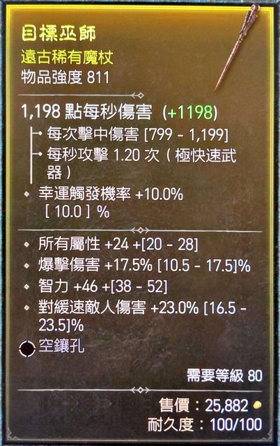 標題[競標] D4 S1賽季 811單手魔杖 頂爆 智力 全屬