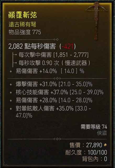 標題[競標] D4 S1 頂易傷 核心爆傷近頂 775弩(74級)