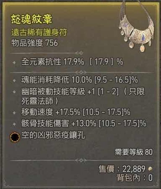 標題[競標] 賽季 死靈 頂跑速 減耗 骸骨 橘孔項鍊