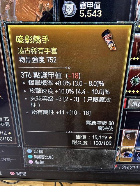 標題[競標] S1 D4 法師 手套 火法專武 頂攻速/爆率