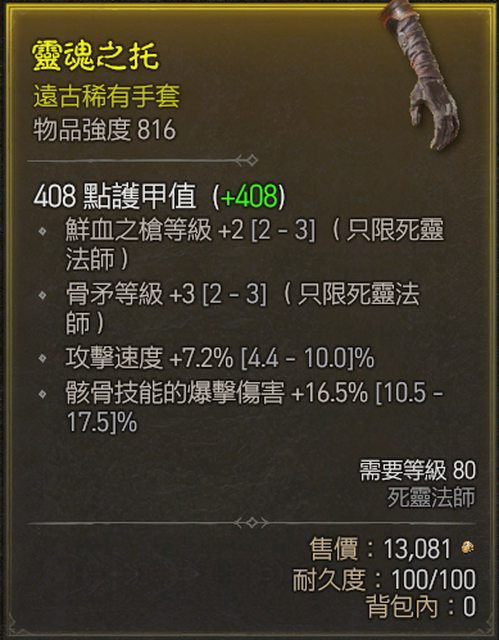 標題[競標] D4 S1死靈手套 骨矛3 攻速 骸骨傷