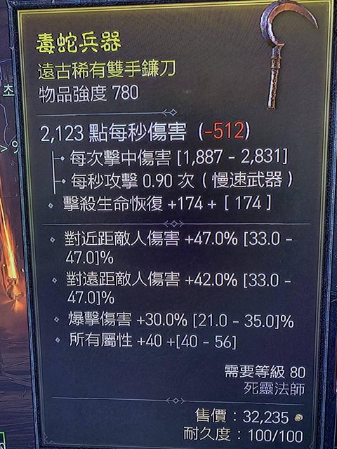 標題[競標] 深夜D4 S1死靈遠近高爆傷雙手鐮刀