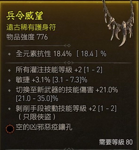 標題[競標] D4賽季 俠盜項鍊灌注+2剝削+2