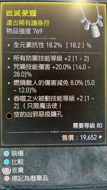 標題[競標] D4 S1 防禦+2/吞噬+2/燃燒減免 橘孔 護身符