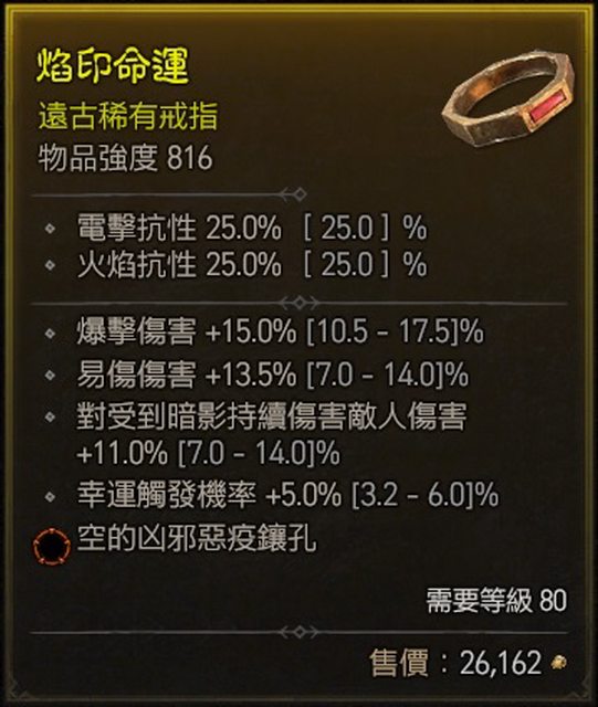 標題[競標] D4 S1戒指 爆傷/易傷/幸運 兇邪