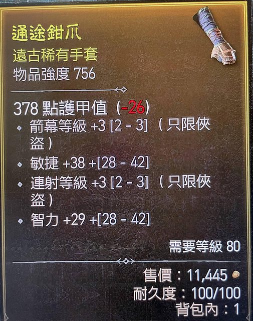 標題[競標] D4 s1 遠程俠盜手套 箭幕3連射3 敏捷