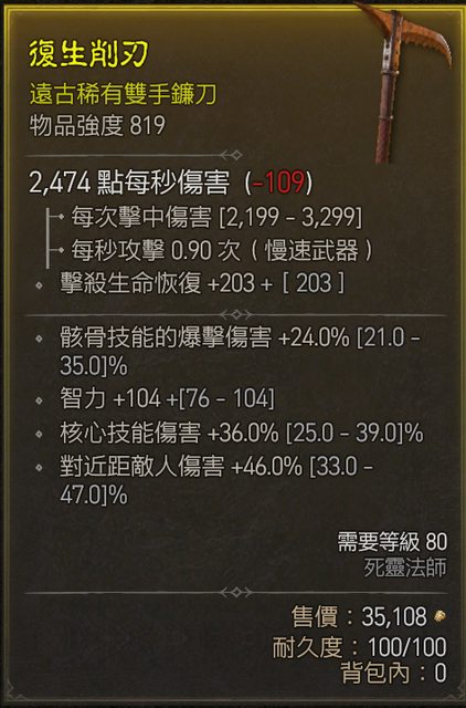 標題[競標] D4 S1 雙手鐮刀 強819 骸骨爆/智力/核心