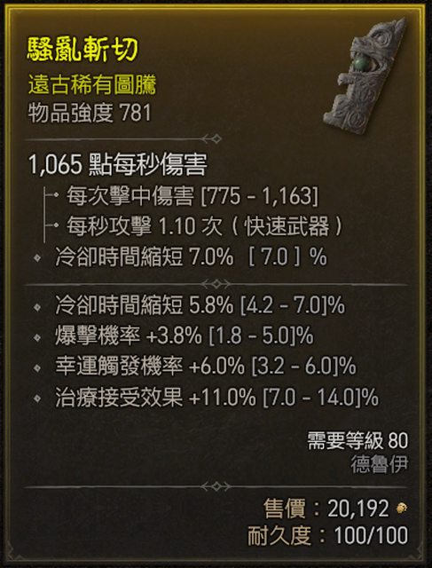 標題[競標] D4 S1 德魯伊圖騰 爆率/幸運/冷卻