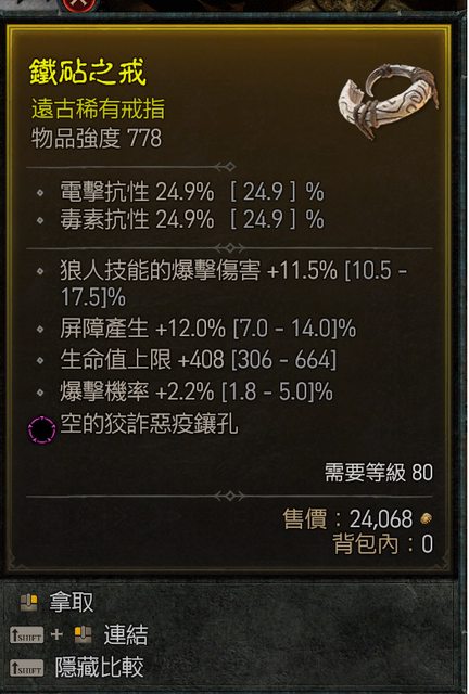 標題[競標] D4 S1 高屏障/爆擊/生命 狡詐戒指