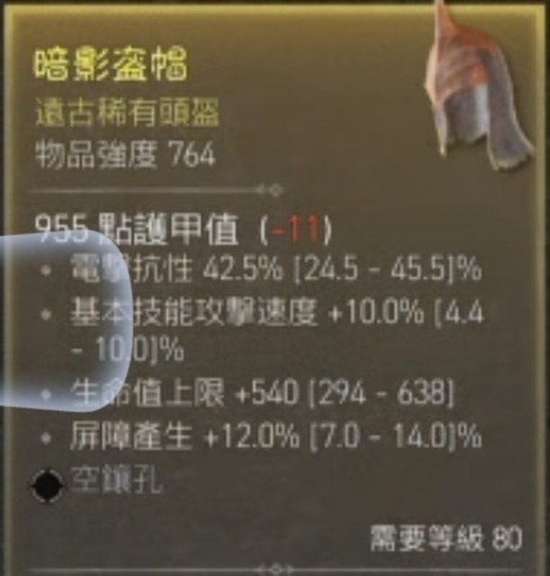 物 品:頭盔 攻速頂 屏障12% 生命540
