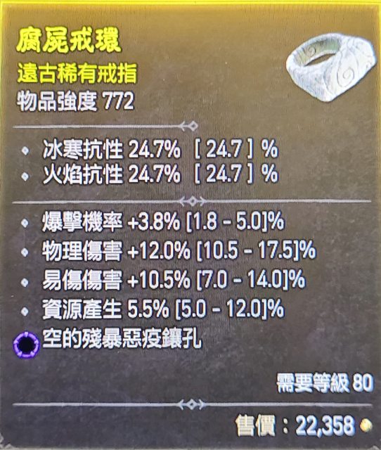 標題[競標] D4 S1 戒指 爆率 易傷 物傷 資源產生 (