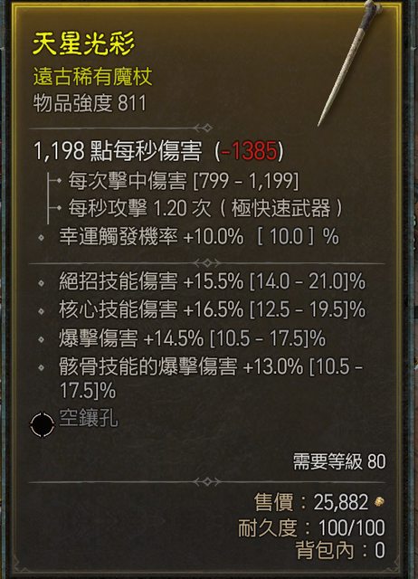 標題[競標] D4 S1 魔杖 強811 爆傷/骸骨爆/核心