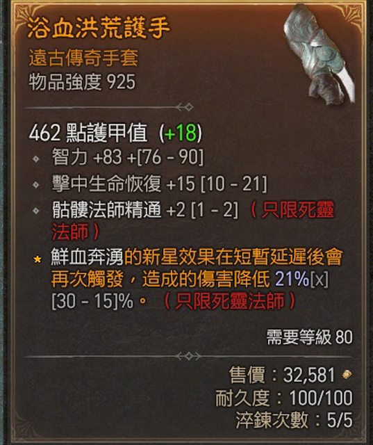 死靈骷髏法師2手套 500萬
