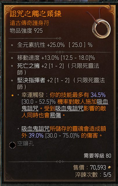 : 物 品:+2堅決指揮官 +2死亡之擁 +13移速 項鍊