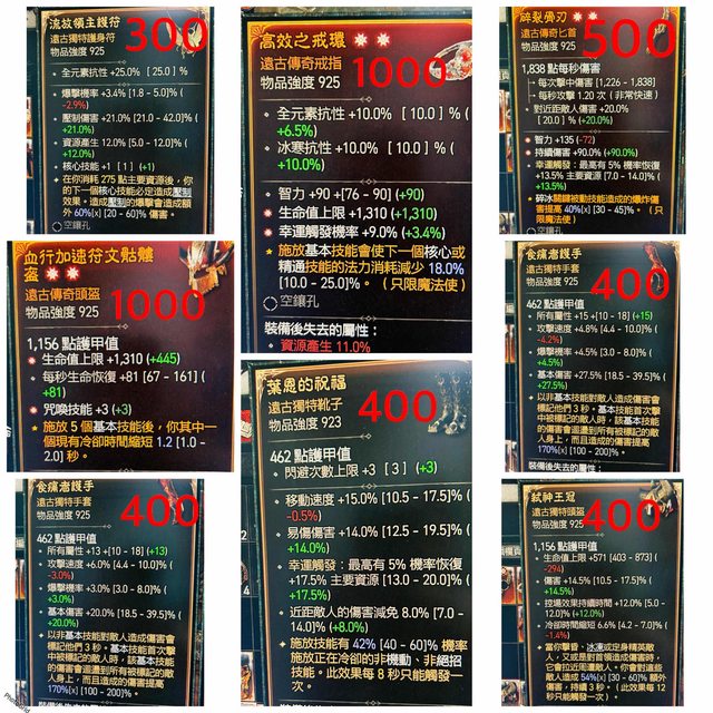 另想收胸甲兩太古智力/生命/護甲含其二