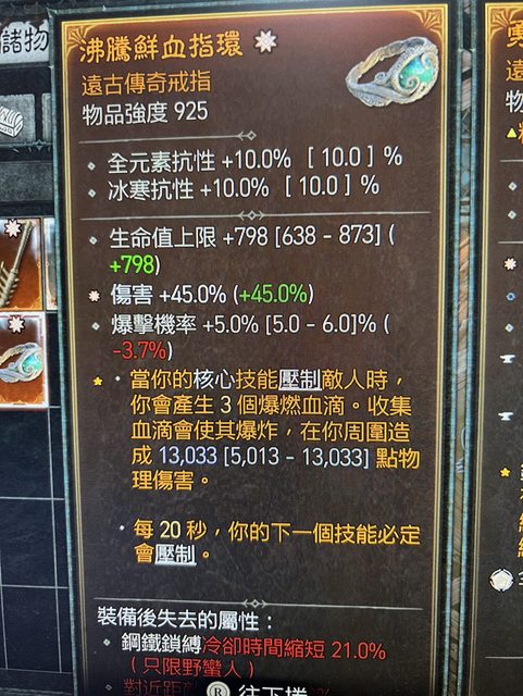 太古戒指(傷害)自帶生命上限、爆率