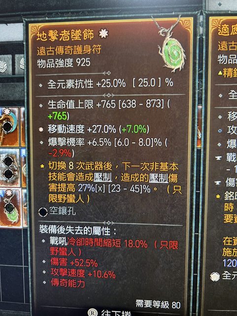 太古護身符(移動速度)自帶爆率、生命上限