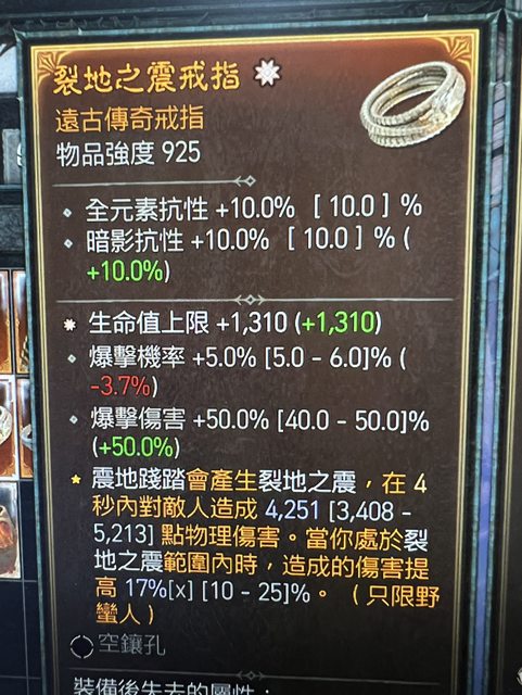 太古戒指(生命)自帶爆率、爆傷