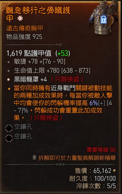 2. +4 黑暗籠罩 敏 生命 胸甲 2.5E