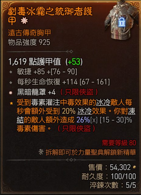 1. +4 黑暗籠罩 敏 生命恢復 胸甲 2E